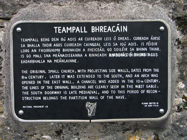 Sign on Teampall Bhreacain, Na Seacht dTeampaill, County Galway,Ireland (J. Demetrescu 2008)
