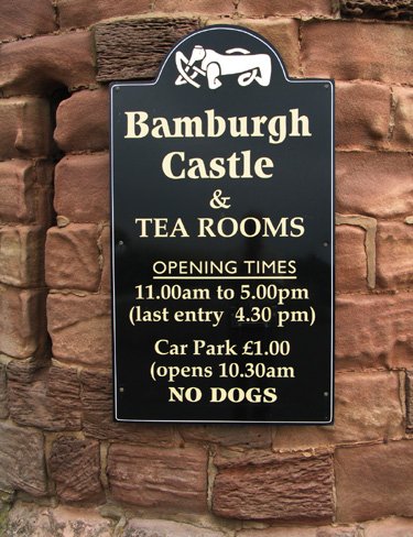 Sign at Bamburgh Castle, Northumberland, England (J. Demetrescu 2004)