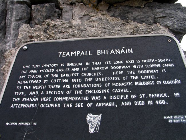 Sign at Teampall Bheanain, County Galway, Ireland (J. Demetrescu 2008)