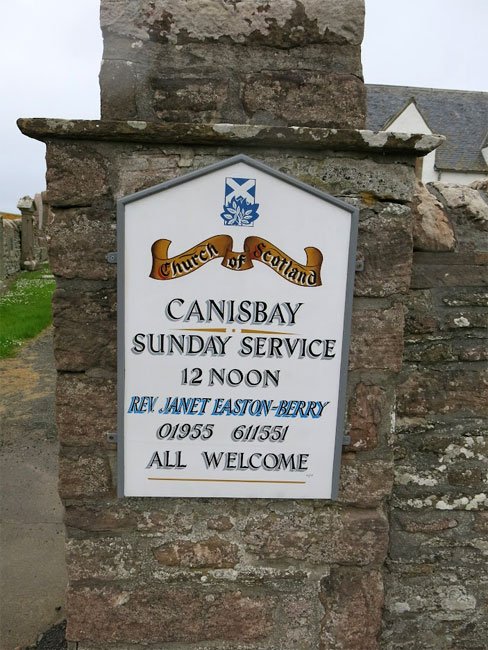 Canisbay Church Sign at Site of St. Drostan's Monastery, Highland, Scotland (J. Demetrescu 2022)