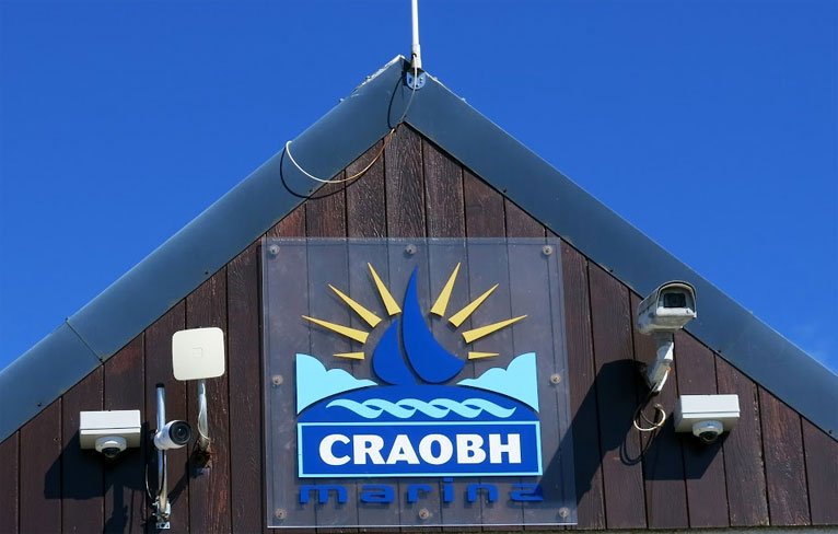 Croabh Marina Sign: Departure Point for Journey to Eileach an Naoimh, Argyll and Bute (Garvellachs), Scotland (J. Demetrescu 2022)