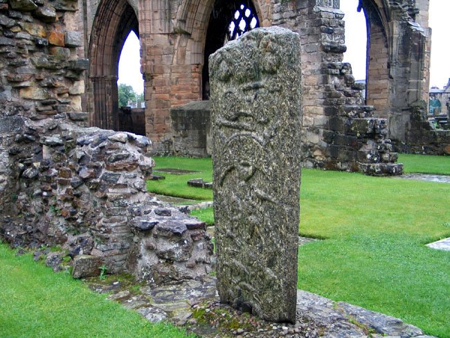 Pictish Cross-Slab Showing Hunting Scene and Symbols, Elgin Cathedral, Moray, Scotland (J. Demetrescu 2007)