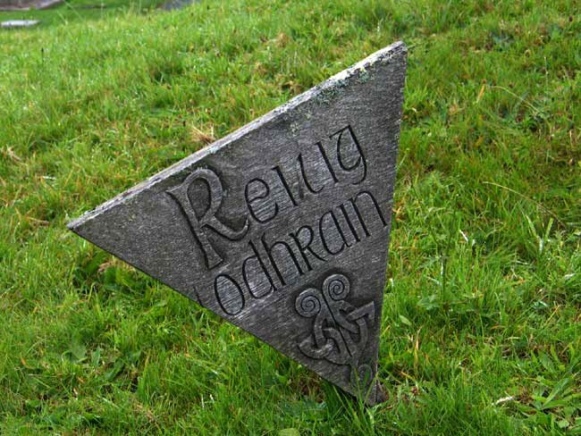 Sign for Reilig Odhrain Graveyard, Iona, Argyll and Bute, Scotland (J. Demetrescu 2004)