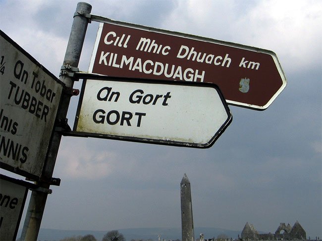 Roadsign for Kilmacduagh, County Galway,Ireland (J. Demetrescu 2008)