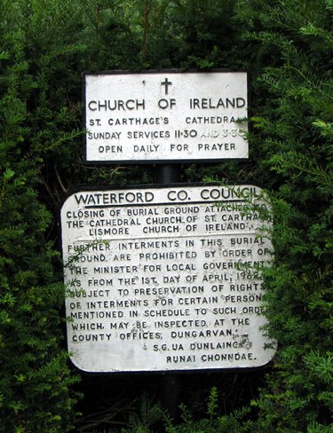 Sign at St. Carthage Cathedral in Lismore, County Waterford, Ireland