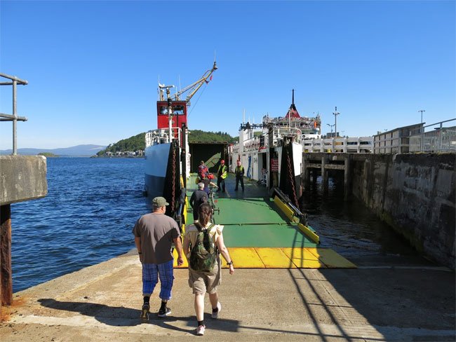 Walking onto Cal Mac Ferry to Lismore for Journey to St. Moluag's Cathedral, Argyll and Bute, Scotland (J. Demetrescu 2022)