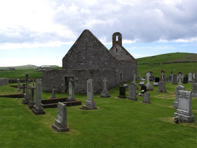 Papil Kirk (St. Laurence Church), Site of the Papil Pictish Symbol Stone Replica, West Burra, Shetland, Scotland