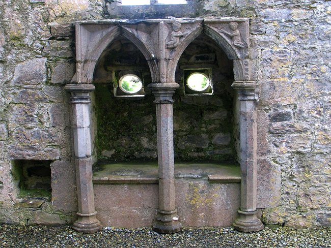 Carving of Two Angels on Double Piscina in the Chancel, Rosserk Friary, County Mayo, Ireland (J. Demetrescu 2009)
