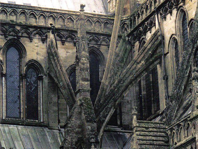 Close-Up of Exterior Butresses of Cathedral, Salisbury Cathedral, Wiltshire, England (Photo Scan by J. Demetrescu 1998)