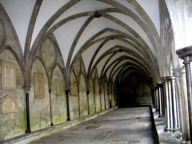 Memorials on Wall in Cloisters, Salisbury Cathedral, Wiltshire, England (J. Demetrescu 2005)