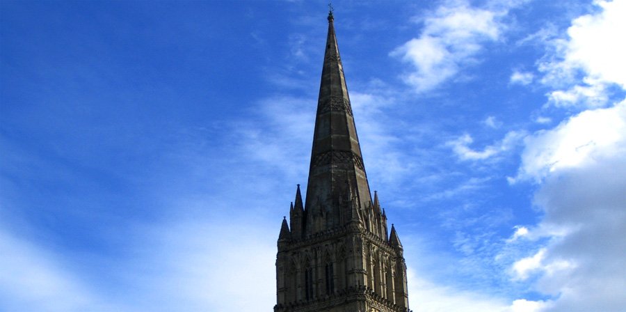 At 404 feet, the Salisbury Cathedral spire is the tallest in England.