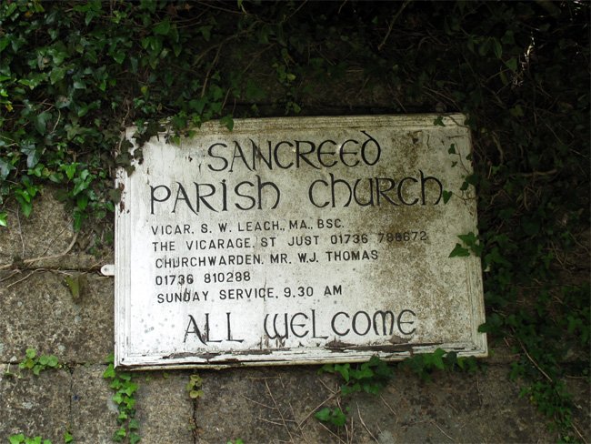 Sancreed Parish Church Sign, Cornwall, England (J. Demetrescu 2011)