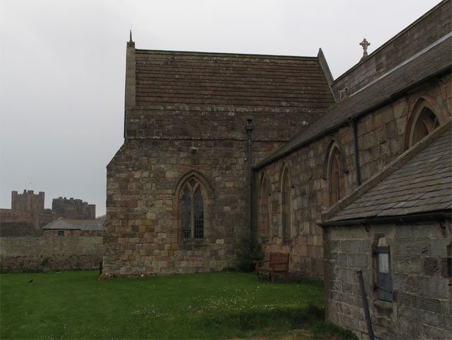 Back of St. Aidan's Church (Bamburgh) with Bamburgh Castle in the Distance, Northumberland, England (J. Demetrescu 2013)