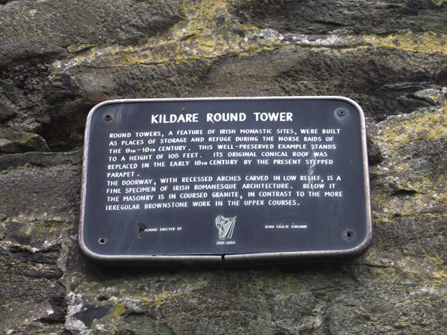 Sign at Kildare Round Tower, County Kildare, Ireland (J. Demetrescu 2009)