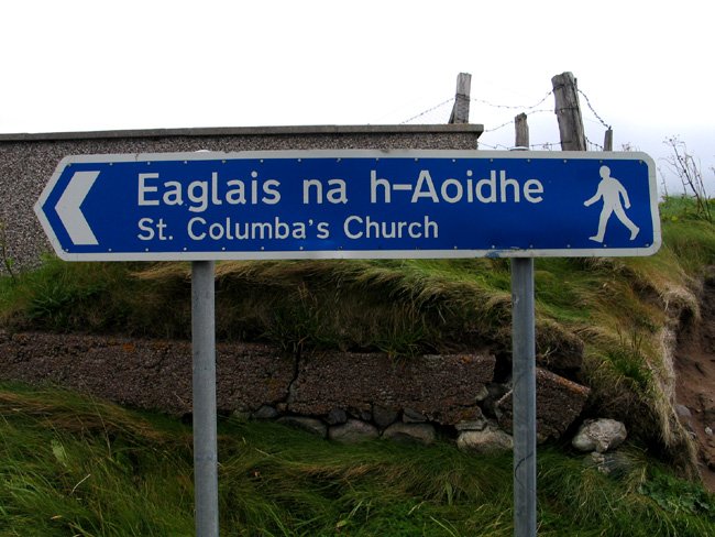Road Sign for St. Columba's Church (Eaglais na h-Aoidhe), Lewis, Western Isles, Scotland (J. Demetrescu 2007)
