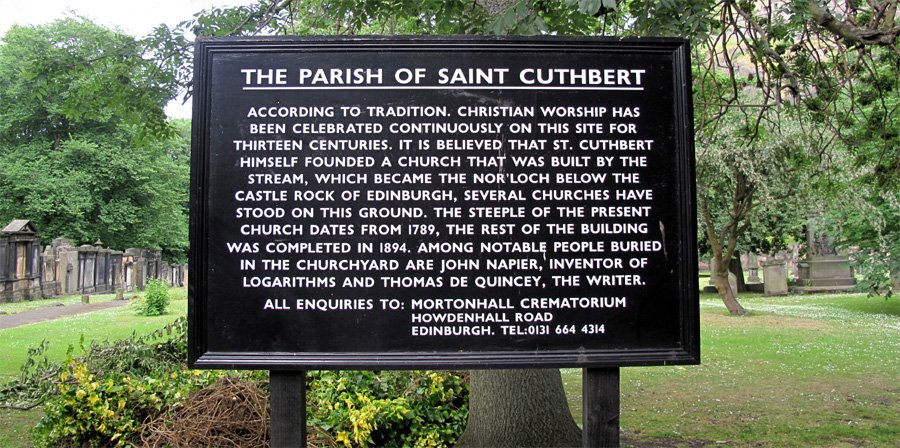 For much of its existence St Cuthbert’s Church was a country kirk, outside of the city wall. In the reign of King David I of Scotland (1124-1153), Edinburgh was clustered on the ridge that runs eastwards from the Castle. All along the foot of the northern slope of the Castle rock was a morass or marsh and from there northwards it was all countryside until one came to Newhaven and Leith on the coast.