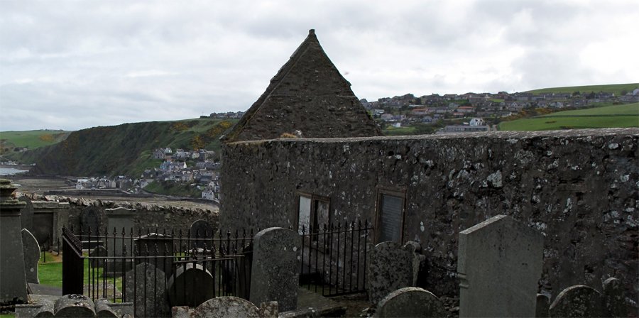On the hillside to the west of Gardenstown, and visible from most parts of the village, are the remains of the Old Kirk of St. John the Evangelist, traditionally said to have been founded in 1004 A.D., but is frequently referred to in the 12th and following centuries. Indeed, one source states that it was built in 1513.