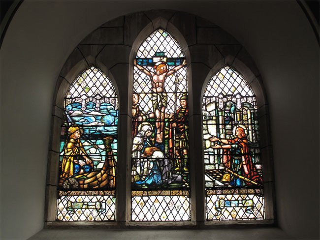 Stained Glass Window in Interior of St. Magnus Church (Birsay) Showing St. Magnus on Left and Right Panels,
