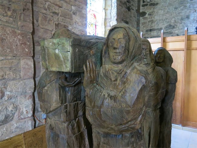 Statue of Monks Carrying St. Cuthbert's Body, Church of St. Mary the Virgin, Holy Island, Northumberland, England (J. Demetrescu 2022)