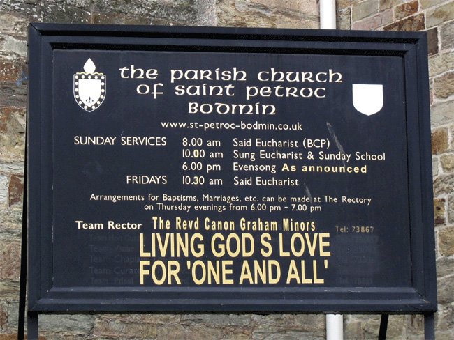 Reader Board, St. Petroc's Church, Bodmin, Cornwall, England (J. Demetrescu 2011)