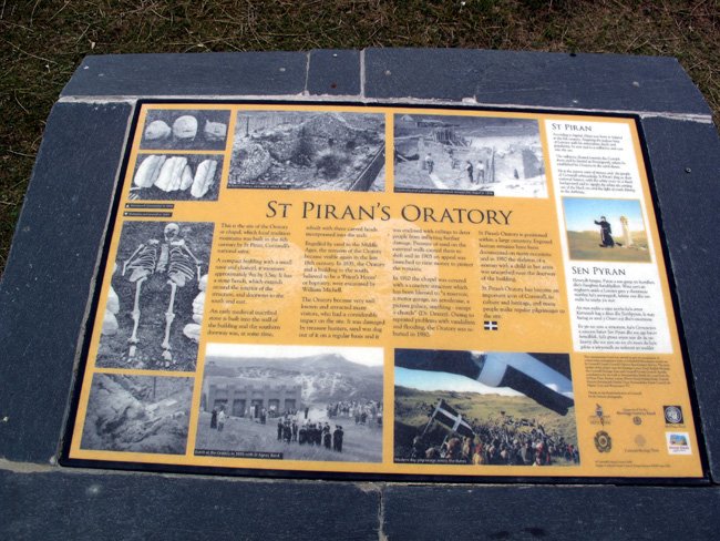 Descriptive Sign at St. Piran's Lost Oratory, Cornwall, England (J. Demetrescu 2011)