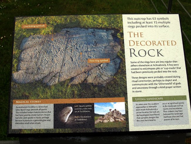 Descriptive Sign at the Second Outcrop at the Achnabreck Cup and Ring Marks Site, Argyll and Bute, Scotland (J. Demetrescu 2013)