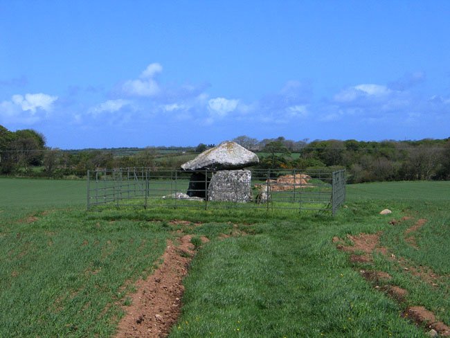 Approaching Bodowyr Burial Chamber, Anglesey, Wales (J. Demetrescu 2009)