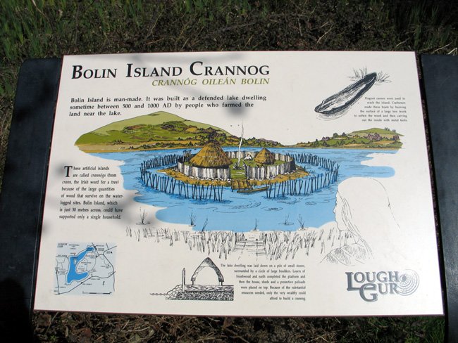 Descriptive Sign for Bolin Island Crannog on Lough Gur, County Limerick, Ireland (J. Demetrescu 2008)