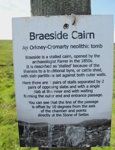Sign for Braeside Chambered Cairn on Eday Heritage Walk,