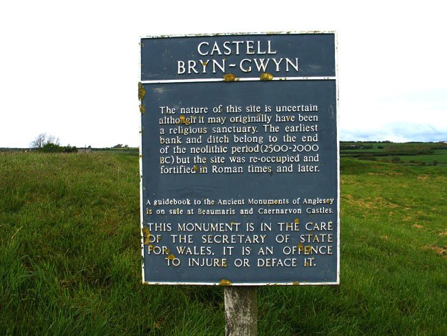 Sign at Castell Bryn Gwyn, Anglesey, Wales (J. Demetrescu 2009)