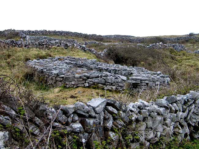 Remains of Cloghanaphuca Clochan (Beehive Hut) Near Oghil Wedge Tomb, County Galway, Ireland (J. Demetrescu 2008)