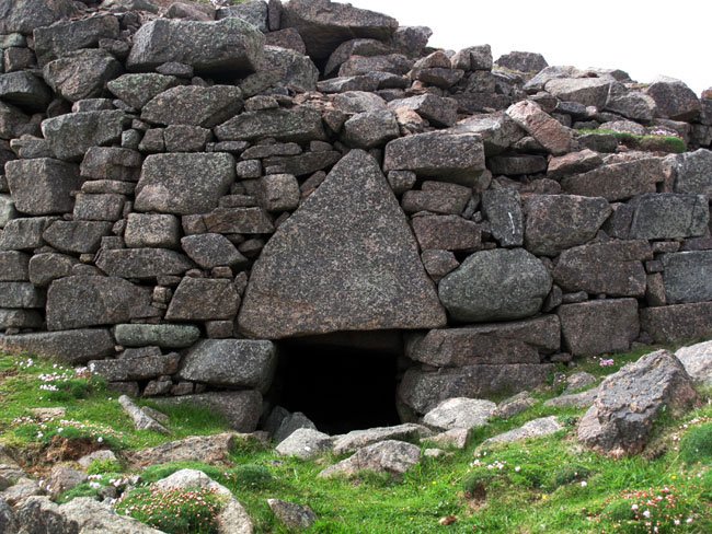 Close-Up of Triangular Lintel Stone Over the Entrance to Culswick Broch, West Mainland, Shetland, Scotland (J. Demetrescu 2010)