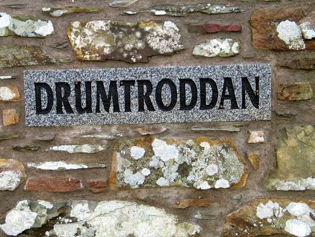 Drumtroddan Sign at Farmstead Entrance to Cup and Ring Marks, Dumfries and Galloway, Scotland (J. Demetrescu 2006)