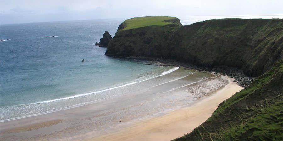 Archaeologists believe that the Celts who settled in the Glencolmcille area about 300 B.C. built the ruined promontory fort at Dun Alt and the stone fort above An Tra Bhan (the beach also known as the Silver Strand) in Malin Beg. Situated in easily defended locations, both are comparatively small and were probably only used when the community was in danger of attack. The remains of defensive walls and the ruins of a small house may be seen, and the foundations of a lookout post are found east of the fort. (Reference: Michael Herity, Gleanncholmcille: A Guide to 5,000 Years of History in Stone. Dublin: Na Clocha Breaca, 1998)