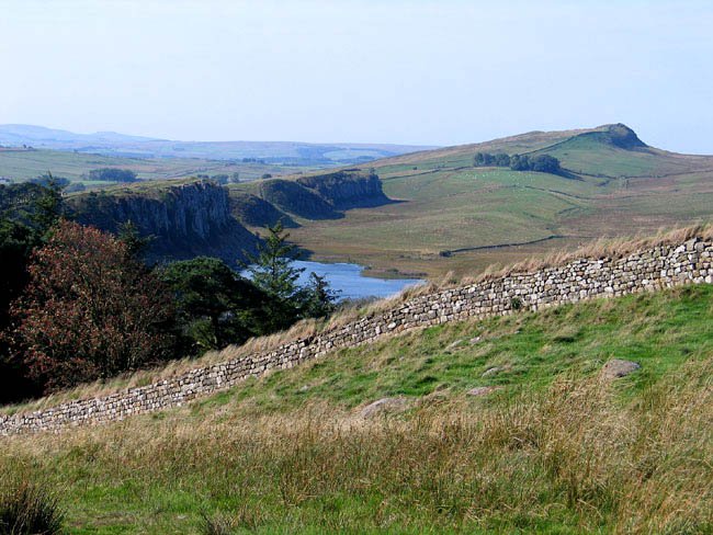 Hadrian's Wall Between Housesteads and Steel Rigg with Crag Lough in the Distance, Northumberland, England