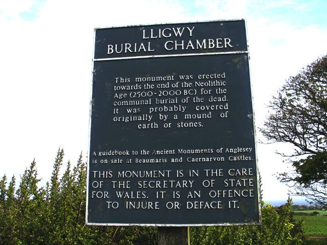 Sign in English at Lligwy Burial Chamber, Anglesey, Wales (J. Demetrescu 2009)