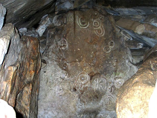 Artwork on the Ceiling Slab Above the End Recess, Cairn T, Loughcrew Carbane East, County Meath, Ireland (J. Demetrescu 2009)