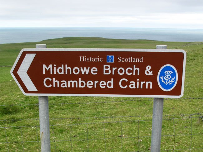 Road Sign for Midhowe Broch (and Midhowe Chambered Cairn), Rousay, Orkney, Scotland (J. Demetrescu 2010)