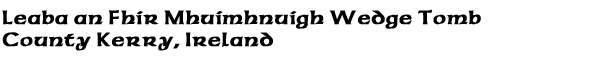 Leaba an Fhir Mhuimhnuigh (also know locally as the Munsterman's Bed or the Giant's Table Wedge Tomb) is located above the village of Ventry, which is located west of Dingle on the R559 (Slea Head Drive) on the Dinle Peninsula, County Kerry, Ireland.
