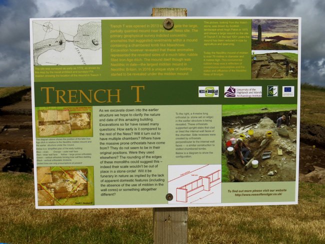 Information Sign for Trench T at Ness of Brodgar Excavation Site, July 2017, Mainland, Orkney, Scotland (J. Demetrescu 2017)