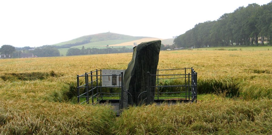 The Pictish Picardy Symbol Stone dates from the 6th or 7th Century A.D. It is believed to be a memorial pillar set up by local farmers. Still in its original position, it commands a view of the hillfort of Dunnideer on the hills beyond.