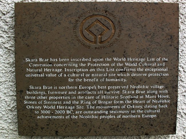 World Heritage Site Plaque, Skara Brae, Mainland, Orkney, Scotland (J. Demetrescu 2010)