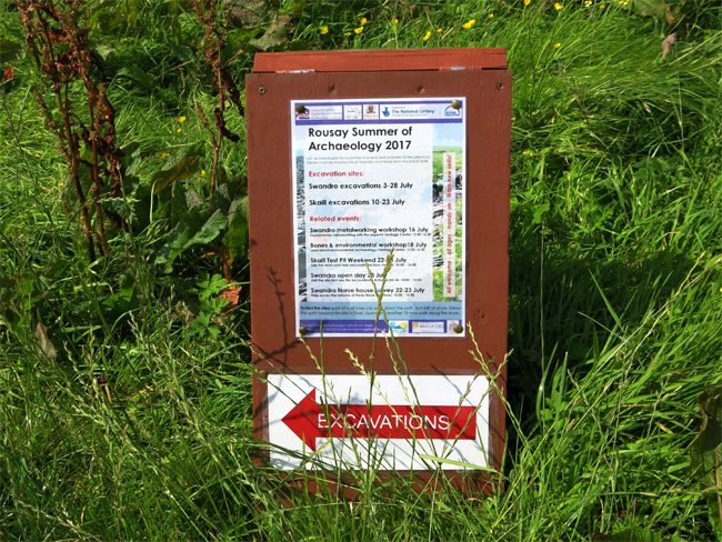 Knowe of Swandro Excavation Information and Direction Sign, Rousay, Orkney, Scotland (J. Demetrescu 2017)
