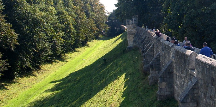 The English city of York has, since Roman times, been defended with walls of one form or another. In 71 A.D., the Romans built a fort occupying about 50 acres on the banks of the River Ouse, and surrounded it with a rectangle of walls. They called their new settlement Eboracum, a latinized form of an old Celtic word probably meaning "Place of the Yew Trees."