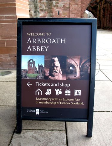 Welcome Sign at Entrance to Arbroath Abbey, Angus, Scotland