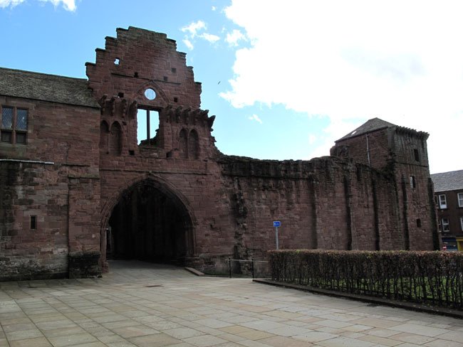 Gatehouse Entrance, Guesthouse (left), and Regality Tower (right), Arbroath Abbey, Angus, Scotland