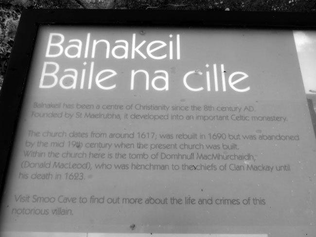 Descriptive Sign in Front of Balnakiel Church (St. Maelrubha's Monastery), Highland, Scotland (J. Demetrescu 2022)