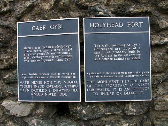 Signs for Roman Walls Surrounding St. Cybi's Church, Anglesey, Wales (J. Demetrescu 2009)