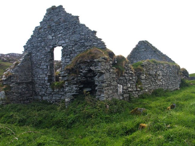 Close-Up of 14th Century Church Ruins, Site of St. Colman's 7th Century Monastery, Inishbofin, County Galway, Ireland