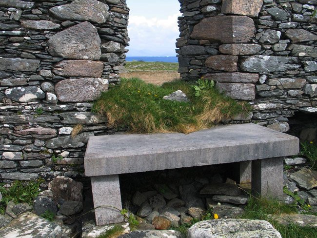 Altar in 14th Century Church Ruins, Site of St. Colman's 7th Century Monastery, Inishbofin, County Galway, Ireland